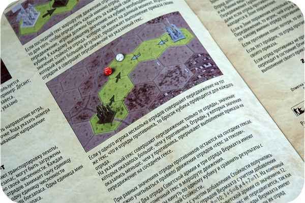 Представьте на секунду сражение Второй мировой. На оборонительные позиции русских наступает танковый взвод немцев в сопровождении пехоты. Защитники основательно укрепились: земля изрыта окопами, на стратегически ключевом холме возведен дзот, на подступах — противотанковые ежи и заграждения из колючей проволоки. Наступление пехоты сдерживают минометчики, занявшие позицию за небольшим подлеском. Наводят их на цель укрывшиеся вплотную к линии огня штабисты в сопровождении радистов. Отряд, вознамерившийся зайти с фланга, угодил прямиком на минное поле. Кажется, русские в порядке. Но штурм длится уже долго, боезапасы обороняющихся на исходе, а врага снабжает целая колонна грузовиков. Смолкает грохот противотанкового орудия, и осмелевшие немцы идут в решающую атаку. Все это — до деталей — отныне возможно в рамках настольной игры.