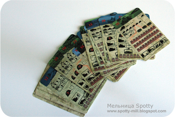 Каждый отряд имеет свою индивидуальную карточку. На одной стороне указаны все характеристики отряда, его состояние, численность, дальность стрельбы и боекомплект.