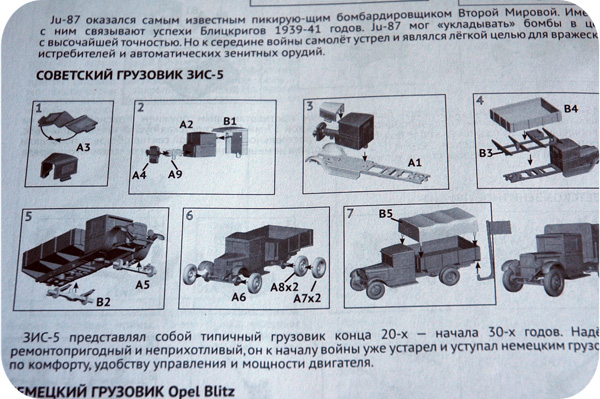 Средний танк Т-34/76 (обр. 1940 года) и армейский 3-х тонный грузовик поступят на вооружение командующего Красной Армии. Хочу отметить, что при сборке грузовика вам необходимо будет согнуть капот определённым образом. Не бойтесь и аккуратно гните — если сделаете всё правильно, ничего не сломается.