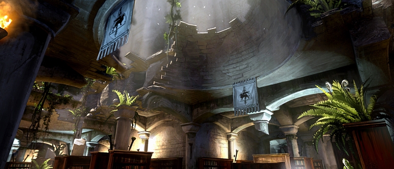 Пройдите глубже в Затонувшую библиотеку, чтобы добраться до консольной комнаты. Местоположение отмечено на миникарте.