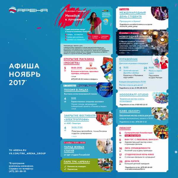 Подробности по тел.: (473) 261-84-89 и на сайте кинотеатра.