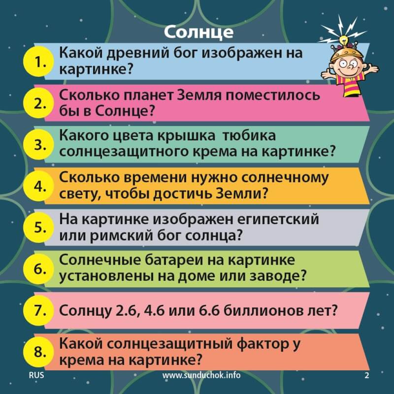 Участник достает из «сундучка» карточку, и в течении 10 секунд внимательно изучает представленную картинку. Время засекается с помощью песочных часов, которые входят в комплект игры. Затем с помощью игровой кости определяется номер вопроса, на который предстоит ответить игроку.