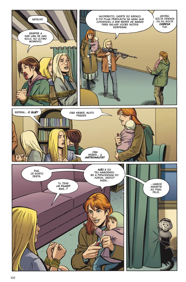 - Один маленький шаг – С Международной космической станции спускается российская капсула «Союз» с тремя пассажирами: одной женщиной и двумя мужчинами. Может ли это быть концом пребывания Йорика в качестве последнего живого мужчины? Собирает Y: The Last Man № 11–17.