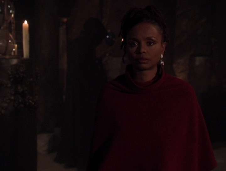 Он стоит, невидимый, в доме. Фиби проходит мимо него. «Прекрасная, она учит факелы ярче гореть» — произносит он слова Шекспира. Она замерла и вернулась, словно услышав что-то… мимолетное ощущение, которое так же быстро исчезло, как и появилось.