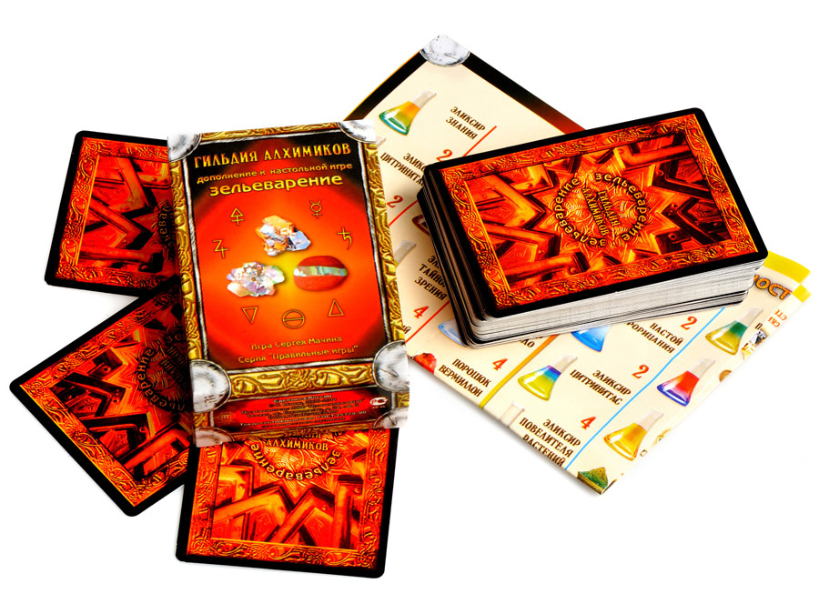 «Зельеварение» – это настольная игра, которая идеально подойдет как для взрослых, так и для детей. В нее можно играть как в кругу семьи, так и соревноваться между собой на турнирах. Игрок будет получать очки, за каждый элемент для зелья, или собранный волшебный рецепт, который он получит. Чем сложнее будет собранный вами рецепт, тем больше очков вы за него получите. В данной игре существуют зачарованные карты, в количестве 77 штук. В каждой карте есть две части: часть рецепта и часть элемента.